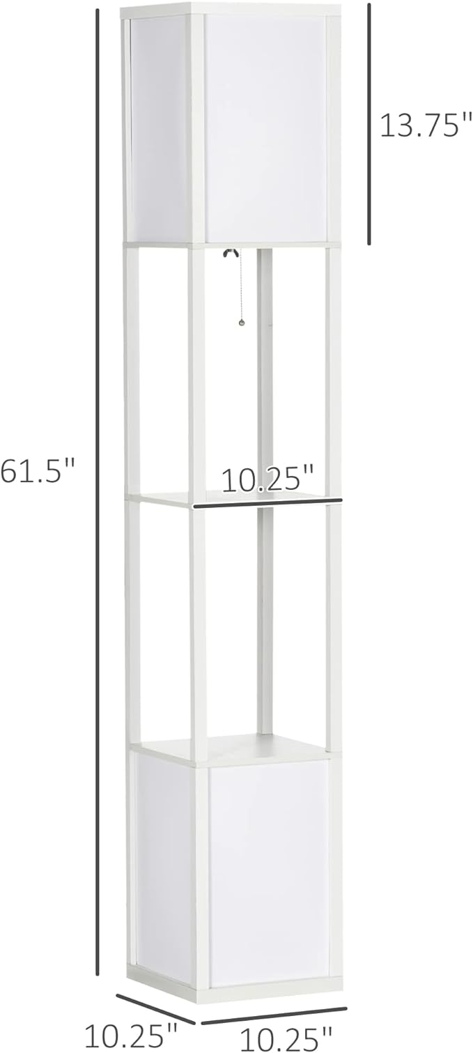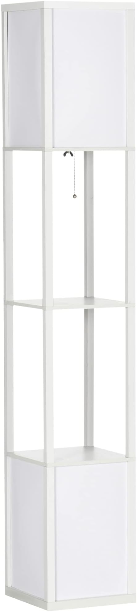HOMCOM Modern Floor Lamp with Shelves & Dual Ambient Lighting, Tall Standing Lamp for Living Room, Bedroom with Fabric Lampshade (Bulb not Included), White