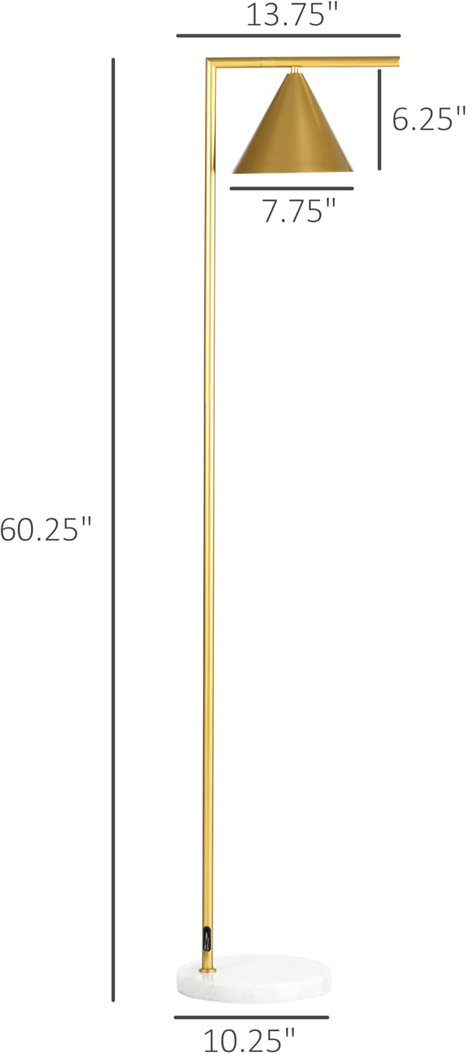 HOMCOM Modern Floor Lamps for Living Room Lighting, Adjustable Standing Lamp for Bedroom Lighting with Rotating Head, Bedside Lamp for Ambient Lighting, (Bulb not Included), Gold