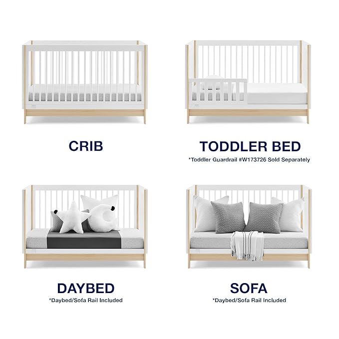 About This 4-IN-1 CONVERTIBLE CRIB: Crib converts to a toddler bed, daybed and sofa (Toddler Guardrail #W173726 sold separately) |...