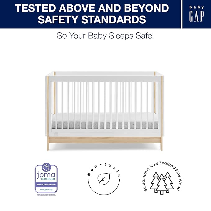 Delta Children babyGap Tate 4-in-1 Convertible Crib TrueSleep Crib and Toddler Mattress (Bundle), Bianca White/Natural