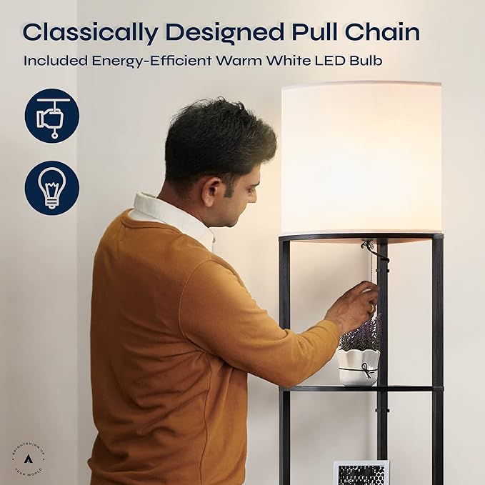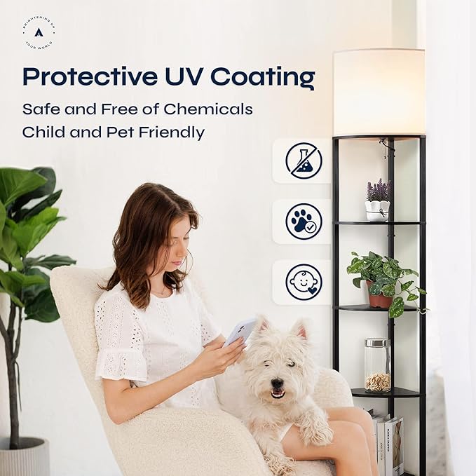 ATAMIN Alvis Edge 72" Floor Lamps for Living Room Decor, Tall Lamp for Bedroom, Modern Corner Shelf Lamp, Sturdy Floor Lamp with Shelves, Standing Lamp with Book Shelves, LED Lamp Shelf (Black)