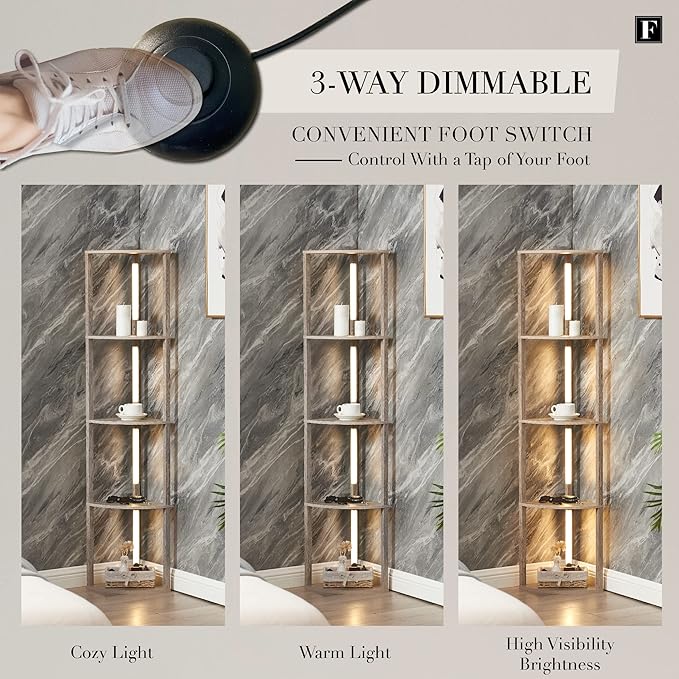 FENLO Fancy - LED Display Shelf with Dimmable Lights, LED Shelf Floor Lamps for Living Room, Sturdy Corner Shelf Curio Cabinet Display, Tall Floor Lamps with Shelves
