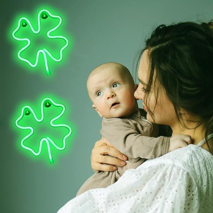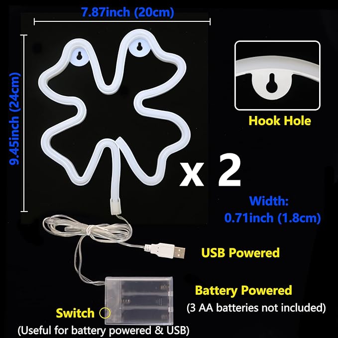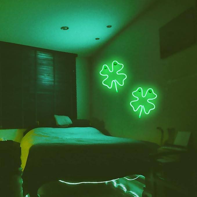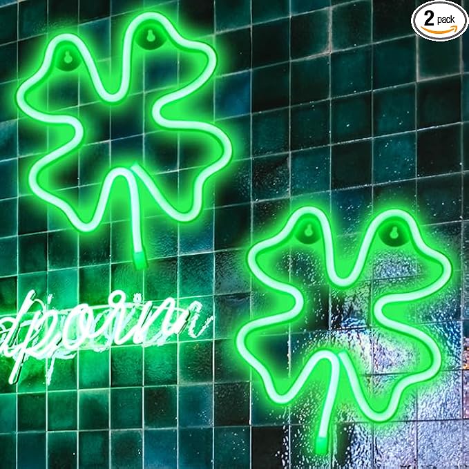 2 Pack Neon Signs Clover Shaped St. Patrick's Day decorations, Green LED Shamrocks Neon Lights for Wall Decor Battery/USB Operated Night Lights for Home, Christmas, Bedroom Decor-2 Pieces