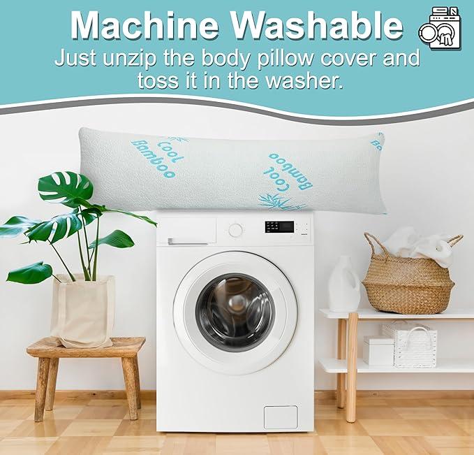 Body Pillow For Adults Cooling Bamboo Rayon Full Adjustable Memory Foam Pillow - Side Sleeper -, +1 Extra Cover, Huggable Long Pillow for Sleeping, Washable & Breathable Pillowcase with Zipper