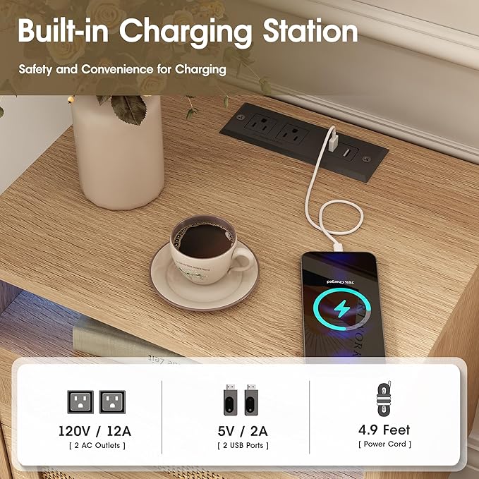 About This 【Charging Station】Our Bohemian nightstand with charging station has 2 AC outlets and 2 USB ports, providing convenient and...