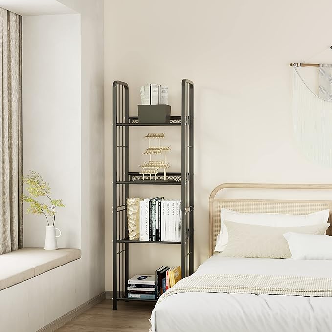 Bookshelf Vertical Storage Freestanding Storage Stand for Living Room, Bedroom, Kitchen, Rust Resistance, Easy Assemblyl Free CombinationMulti-Functional Organizer (4 Tiers, Black)