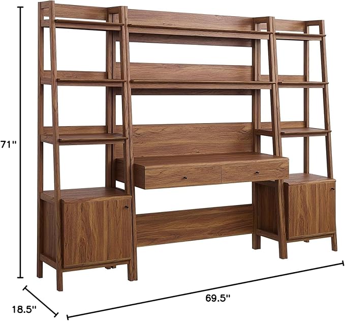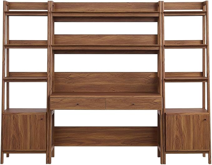 Modway Bixby 3-Piece Home Office Desk and Bookshelf Display Case in Walnut