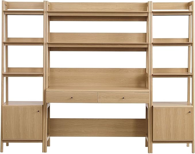 Modway Bixby 3-Piece Home Office Desk and Bookshelf Display Case in Oak