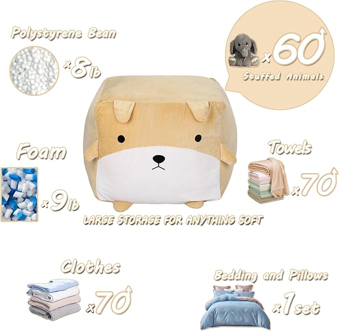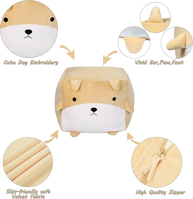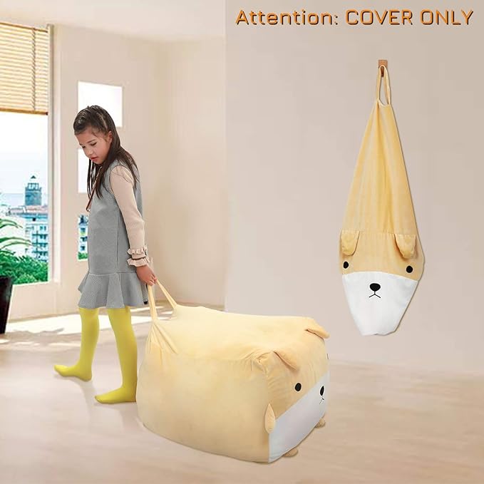 Cute Dog Toy Organizers and Storage for Boys and Girls, Gifts for Kids Bedroom Decor, Stuffed Animal Storage Bean Bag Chair Large Size 22x24 Inch Velvet Extra Soft, Cover ONLY