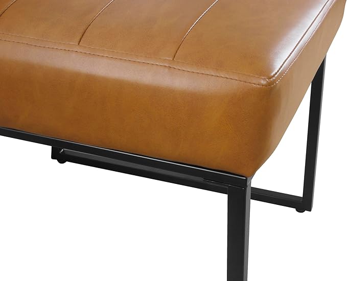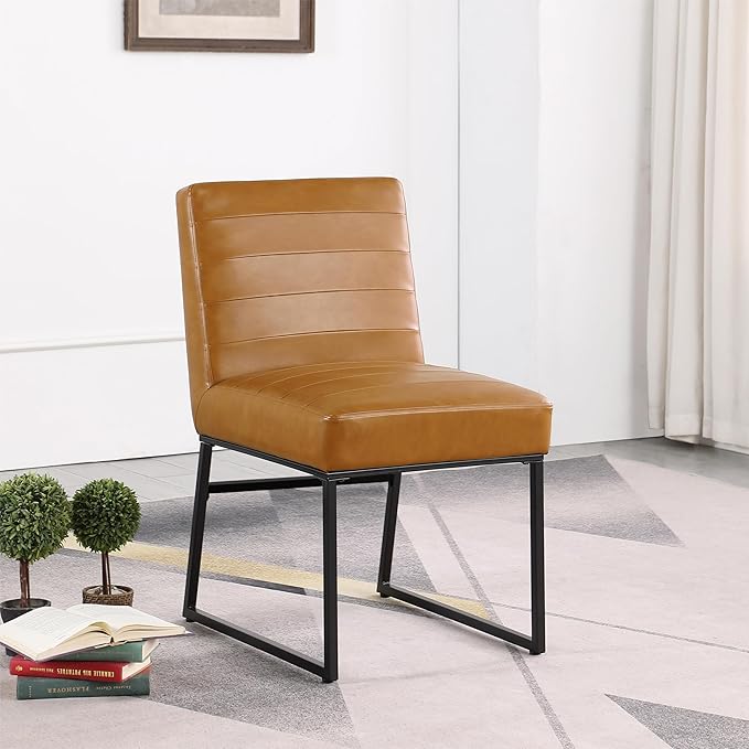 HomePop Home Décor | Single Pack Channeled Metal Dining Chair, Brown Faux Leather