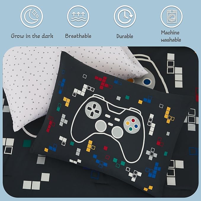 About This 【Glow in the Dark Design】The game controller pattern can glow in the dark, creating a marvellous sleeping environment...