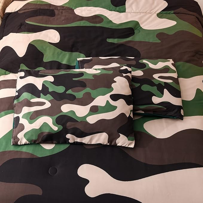 Meeting Story Camouflage Bedding Set, Colorful Pattern Style Comforter Set, 5 PCS One Comforter Two Pillowcases Two Sheets in One Bag, All Season Bedspread for Teens Adults (Green, Full 5Pcs)