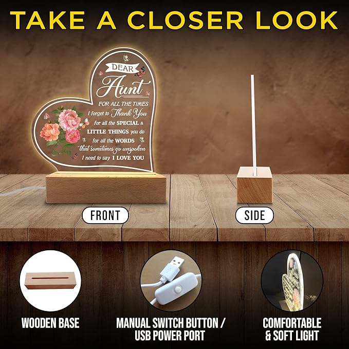 Acrylic Night Light Gifts for Aunt - Dear Aunt I Love You - Aunt Gifts from Niece and Nephew - Christmas, Thanksgiving, Birthday Gifts for Aunt