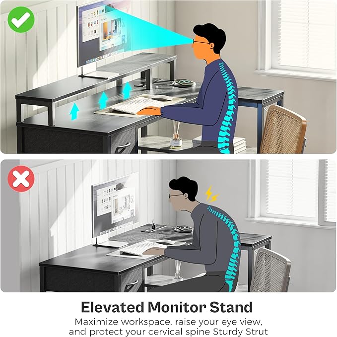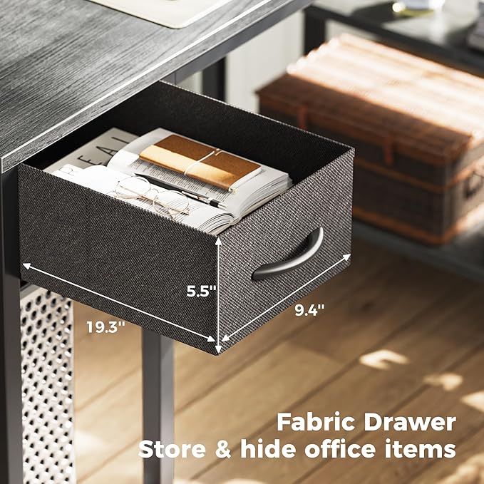 SUPERJARE 47 inch Reversible L Shaped Desk with LED Lights & Power Outlets, Computer Desk with Shelves & Monitor Stand, Gaming Desk with Drawer, Home Office Desk Corner Desk, Grey
