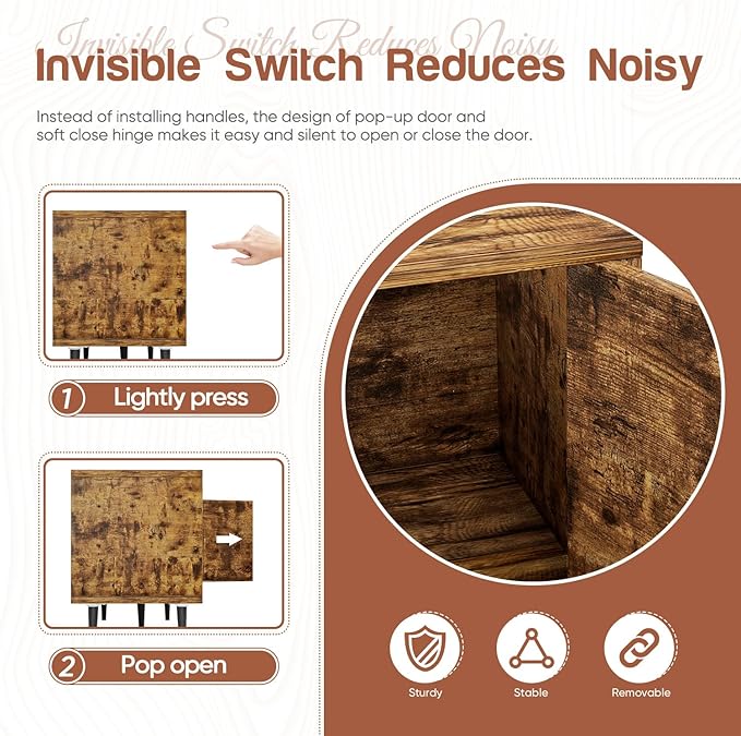 About This Pop-up Door: The TV stand adopts pop-up doors instead of handles, so that it looks very neat. And...