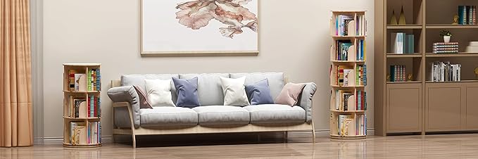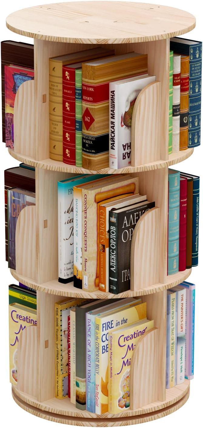 3 Tier 360° Rotating Stackable Shelves Bookshelf Organizer 360 Display Rotating Bookshelf Wood Book Shelf Organizer for Bedroom, Living Room, Study Room - Intexca