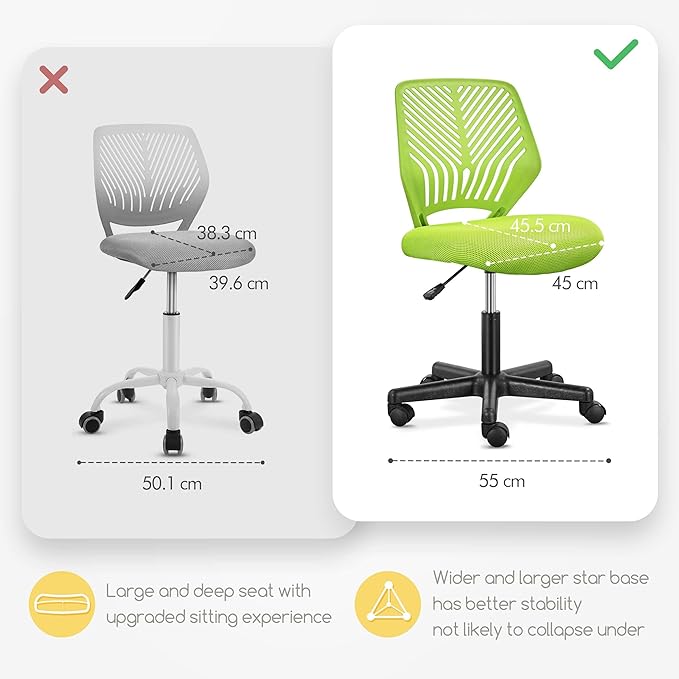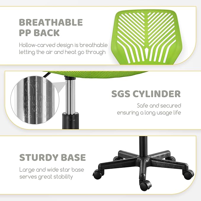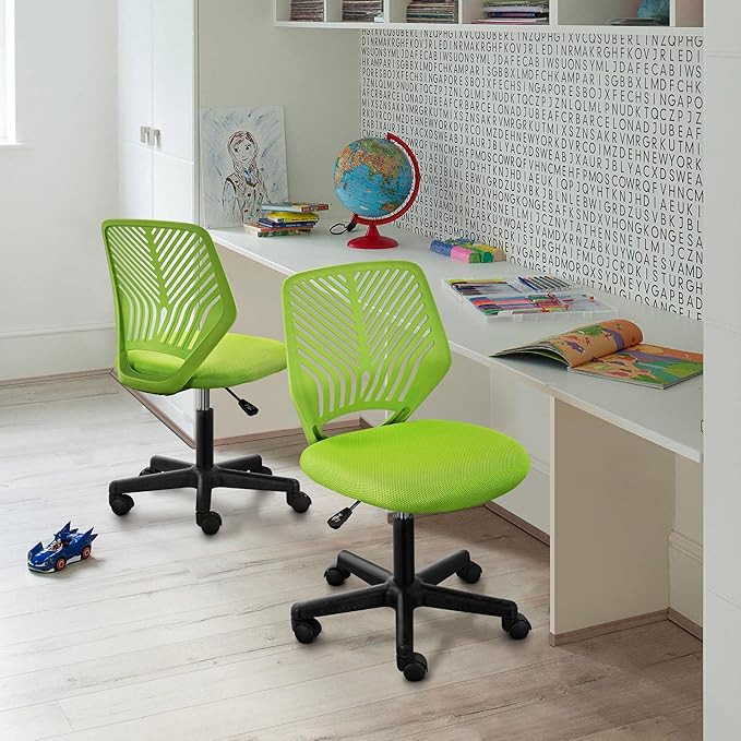 Yaheetech Kids Cute Desk Chair Small Computer Desk Chair for Teens Low-Back Armless Study Chair Swivel Task Chair Bedroom School Chair with Lumbar Support, Green