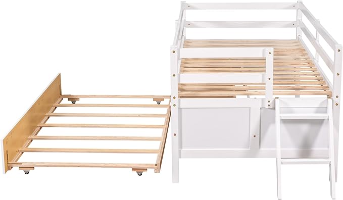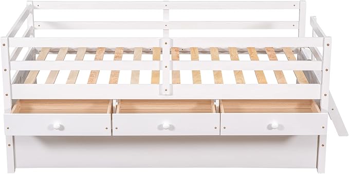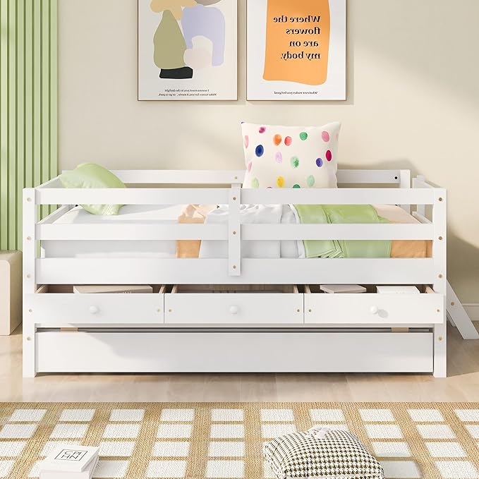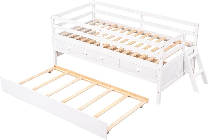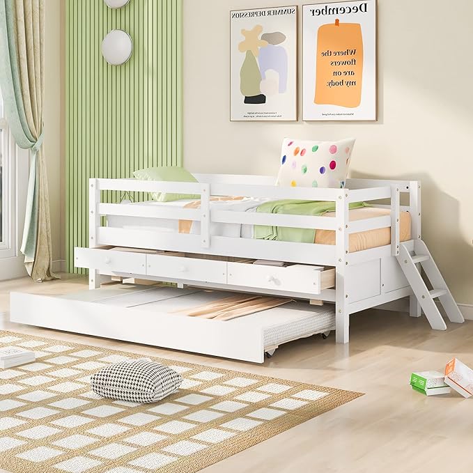 Merax Twin Modern Wood Daybed with Trundle Bed and Drawers Sofa Bed Frame for kids Boys Girls/No Box Spring Needed White