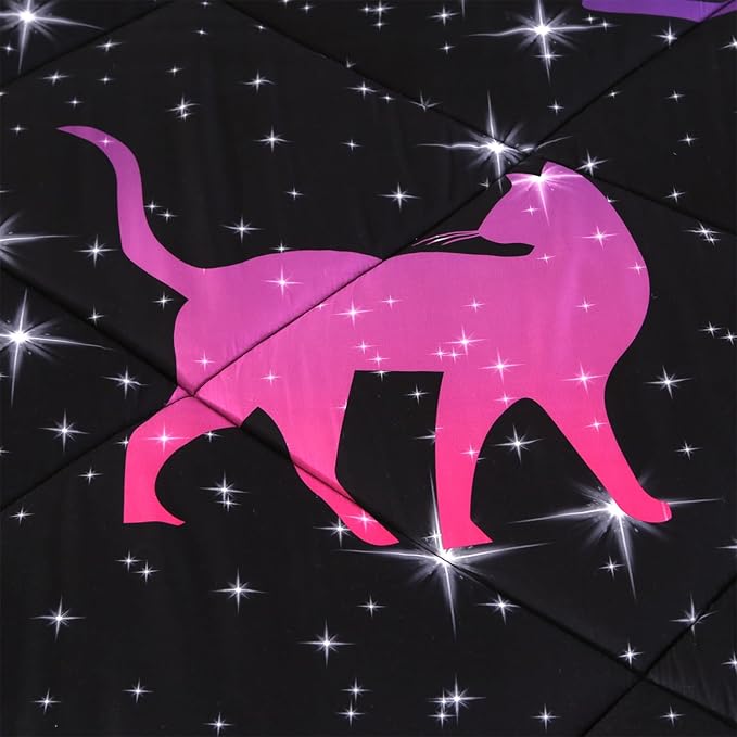 ENCOFT Comforter Set Queen for Girls and Boys, Premium 3 Piece Cats Bedding Set Black, Comfortable and Breathable for Teens and Adults, 1 Comforter and 2 Pillowcases