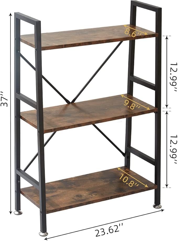 TooCust 3 Tier Open Book Shelf, 37" x 23" x 10.8" 3 Tier Wood Bookshelf, 3 Shelf Bookcase, Vintage Standing Metal Frame Book Shelves, Rustic Brown