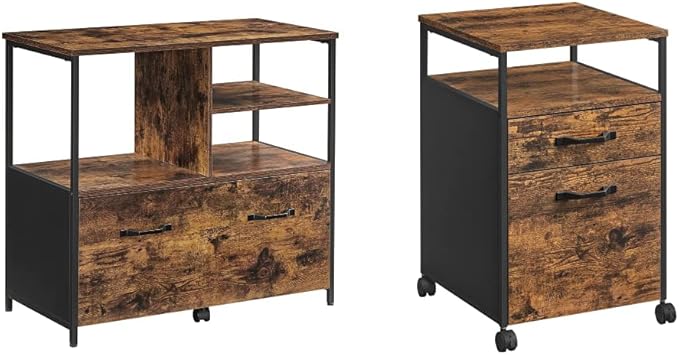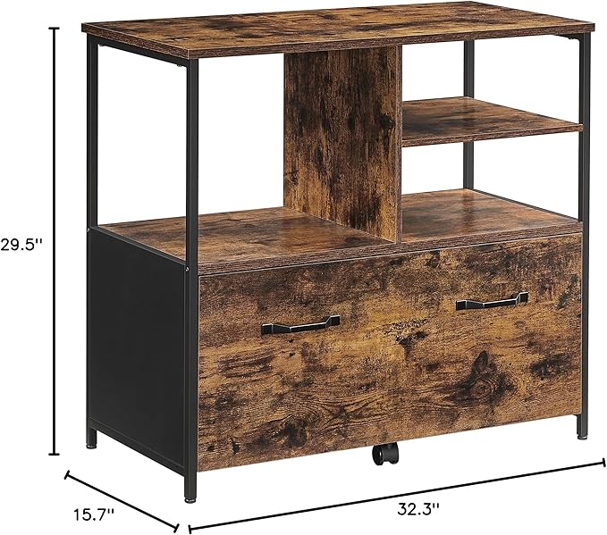 VASAGLE Lateral File Cabinet with Open Shelves and Drawer Mobile Filing Cabinet with Wheels