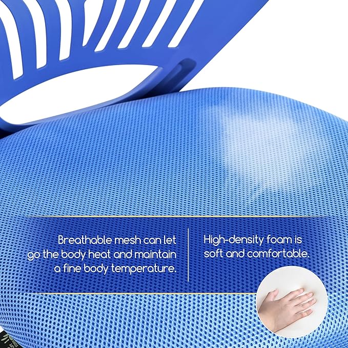 Yaheetech Students Desk Chair Low-Back Armless Study Chair Swivel Task Chair Cute Bedroom Chair with Lumbar Support Adjustable Height for Youth, Blue