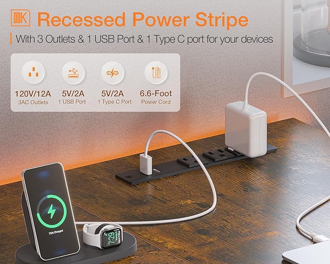 About This 【Power Outlets & USB Charging Ports】 ODK L shaped computer desk is equipped with 3 Power outlets &...