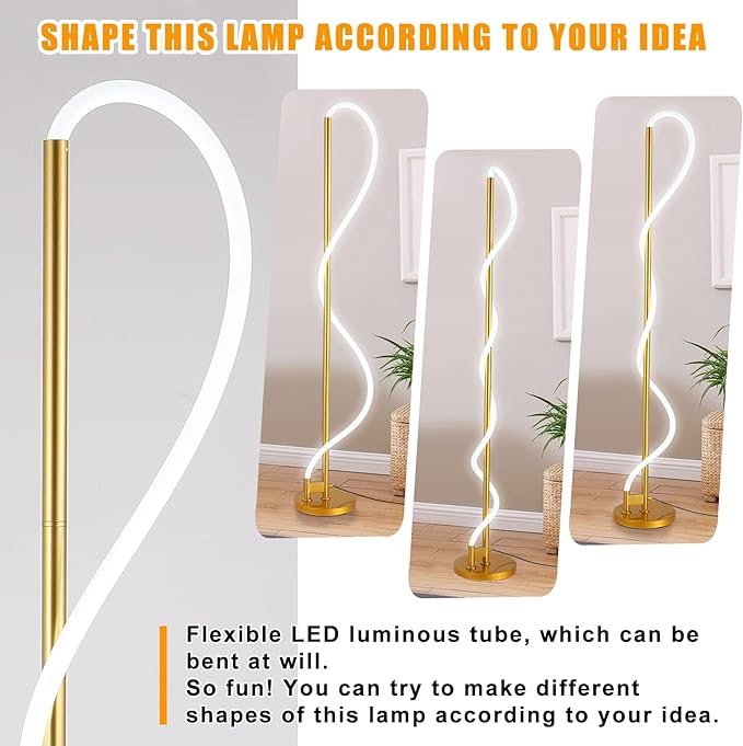 Modern LED Gold Floor Lamp, Flexible DIY Modeling Tall Standing Lamp, 35W/2700lm Ultra Bright White Light Corner Floor lamp for Bedroom, Living Room, Office