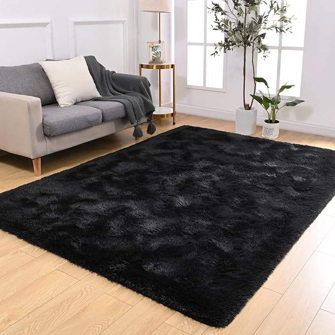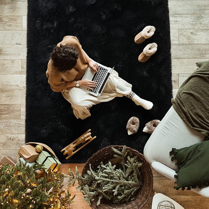Softlife Rug for Bedroom 4x5.3 Feet Area Rug for Living Room Super Soft Shaggy Rugs for Kids Room Fluffy Fuzzy Carpets Long Plush Bedside Rug Nursery Christmas Home Decoration for Boys Girls, Black