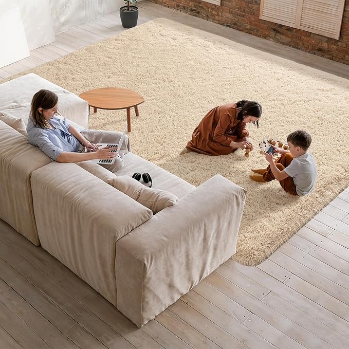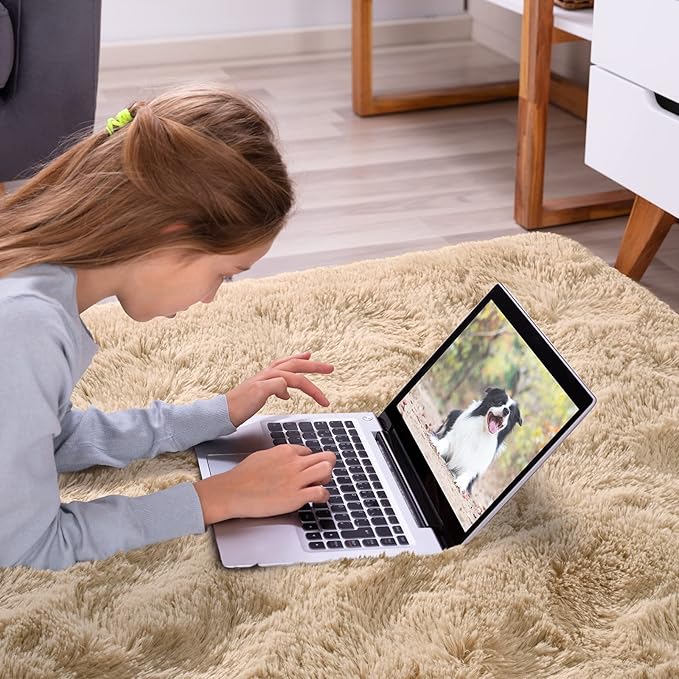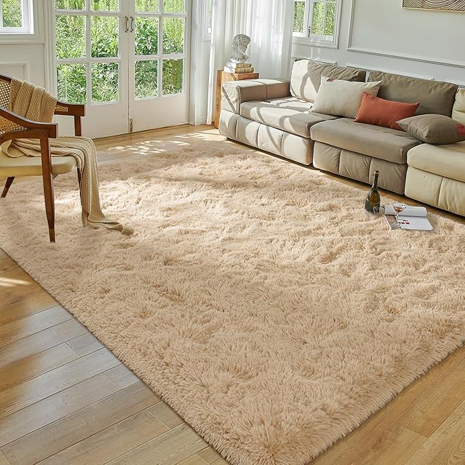 Softlife Rug for Living Room 5.3x7.6 Feet Area Rug for Bedroom Super Soft Shaggy Rugs for Kids Room Fluffy Fuzzy Carpets Long Plush Bedside Rug Nursery Christmas Home Decor for Boys Girls, Beige