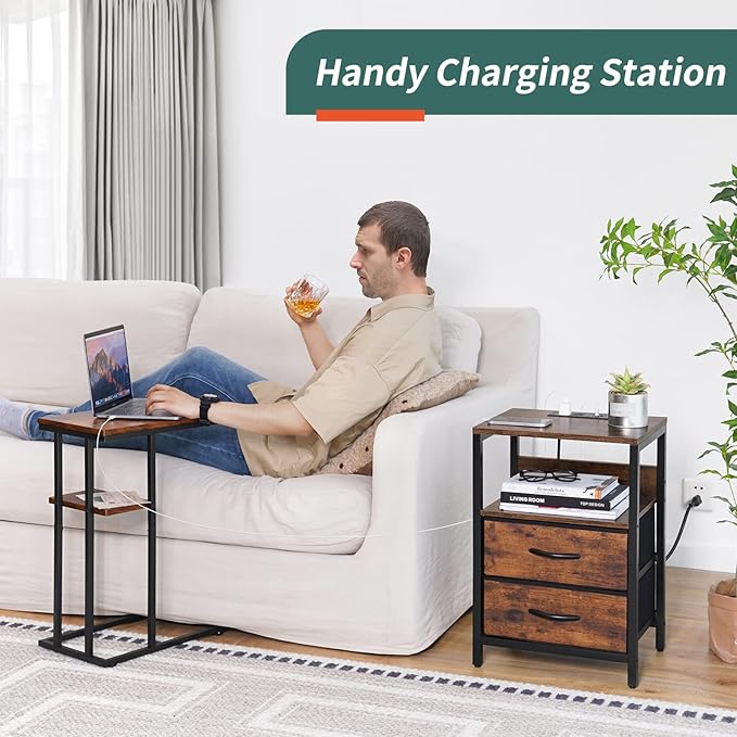 About This 🔥🔥🔥Always by Your Side, Designed for Your Better Life!🔥🔥🔥 🔋【Charging Is A Breeze!】The end tables with 2 USB...