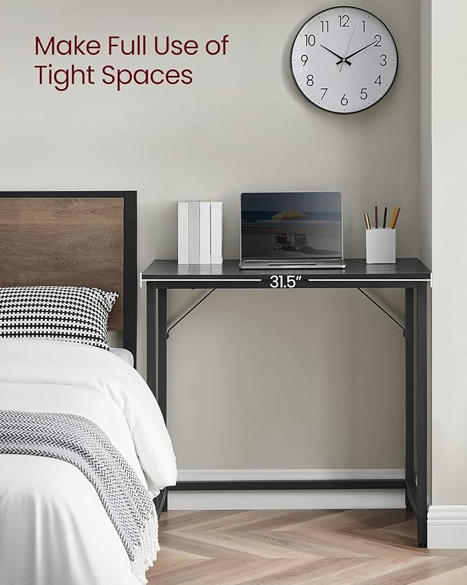 VASAGLE Computer Desk, Gaming Desk, Home Office Desk, for Small Spaces, 19.7 x 31.5 x 29.5 Inches, Industrial Style, Metal Frame, Black with Wood Grain ULWD038B56