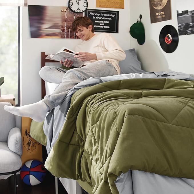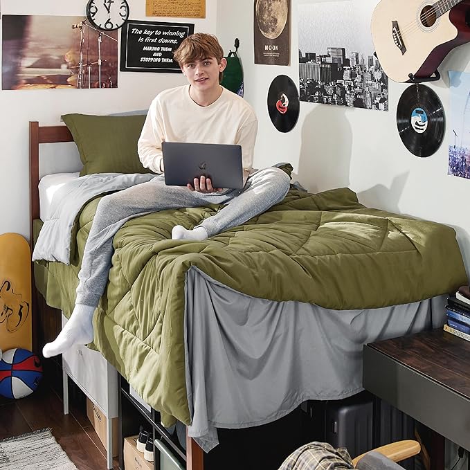 Bedsure Olive Green Twin XL Comforter Set - 5 Pieces Reversible Twin XL Bed in a Bag Twin XL Bed Set with Comforters, Sheets, Pillowcase & Sham, Twin XL Bedding Sets