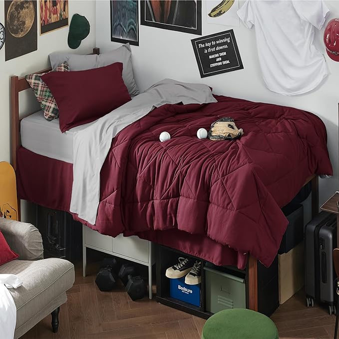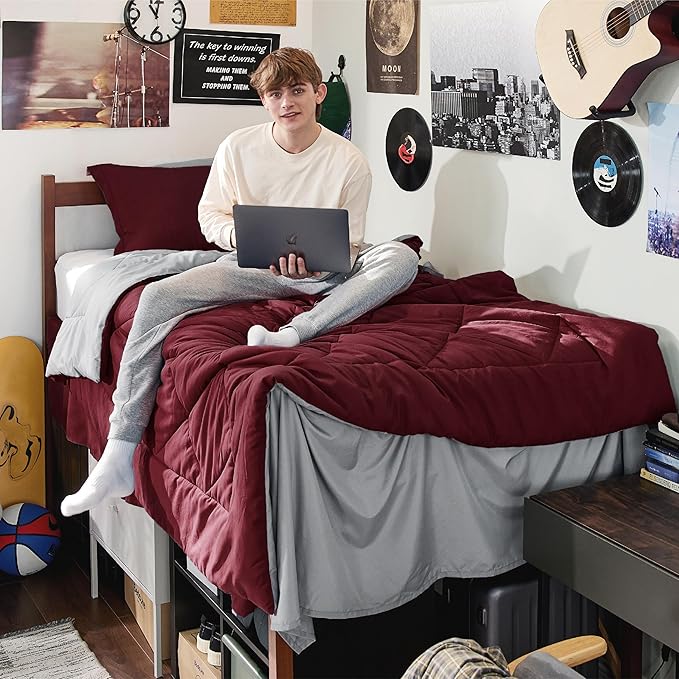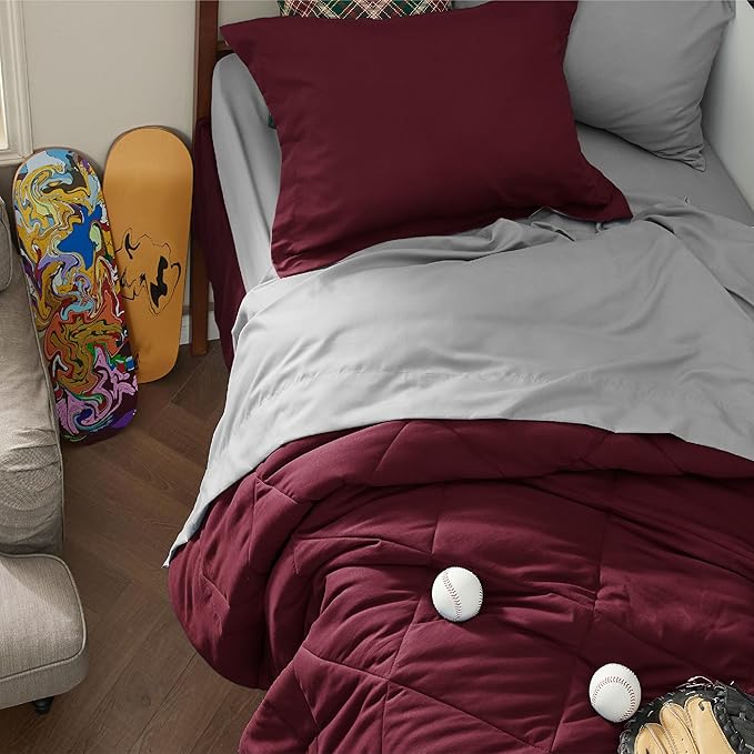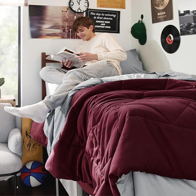 Bedsure Burgundy Twin XL Comforter Set - 5 Pieces Reversible Twin XL Bed in a Bag Twin XL Bed Set with Comforters, Sheets, Pillowcase & Sham, Twin XL Bedding Sets