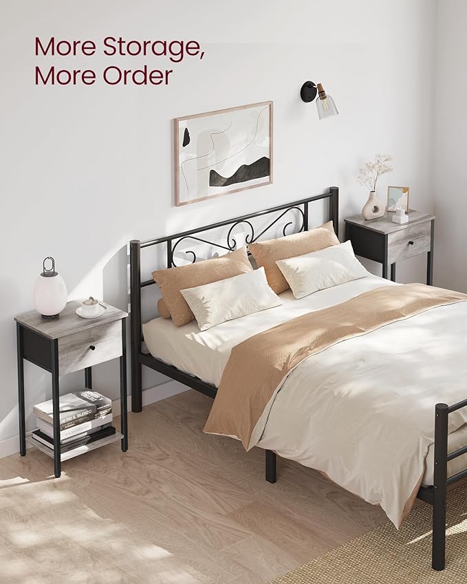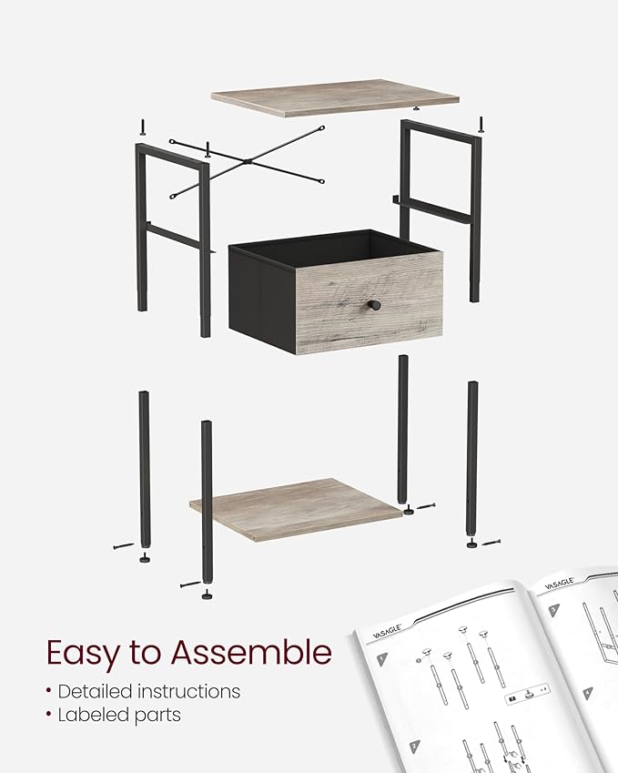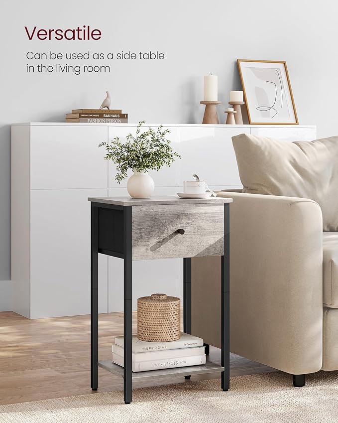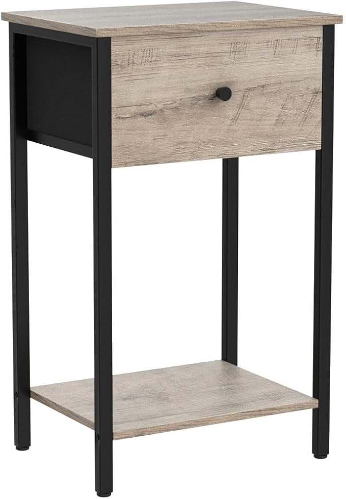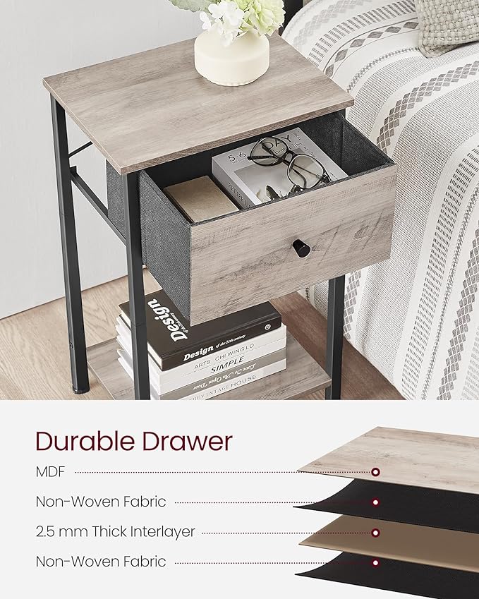 VASAGLE Nightstands, Set of 2, Side Table with Fabric Drawer, 24-Inch Tall End Table with Storage Shelf, Bedroom, Greige and Black ULGS221B02
