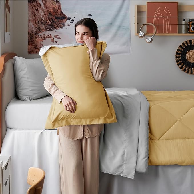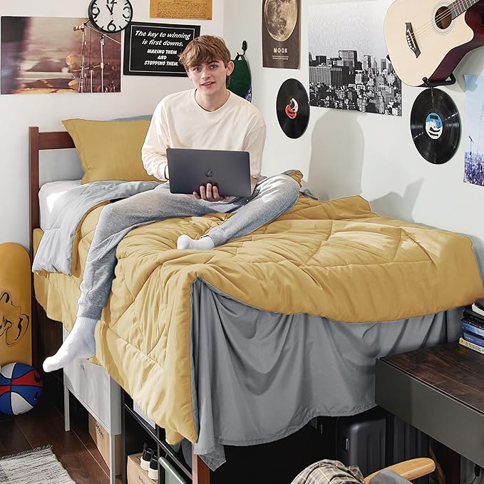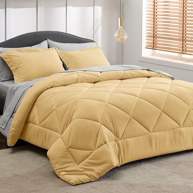 Bedsure Yellow Twin XL Comforter Set - 5 Pieces Reversible Twin XL Bed in a Bag Twin XL Bed Set with Comforters, Sheets, Pillowcase & Sham, Twin XL Bedding Sets
