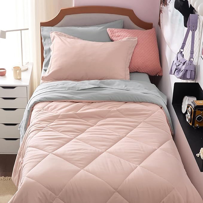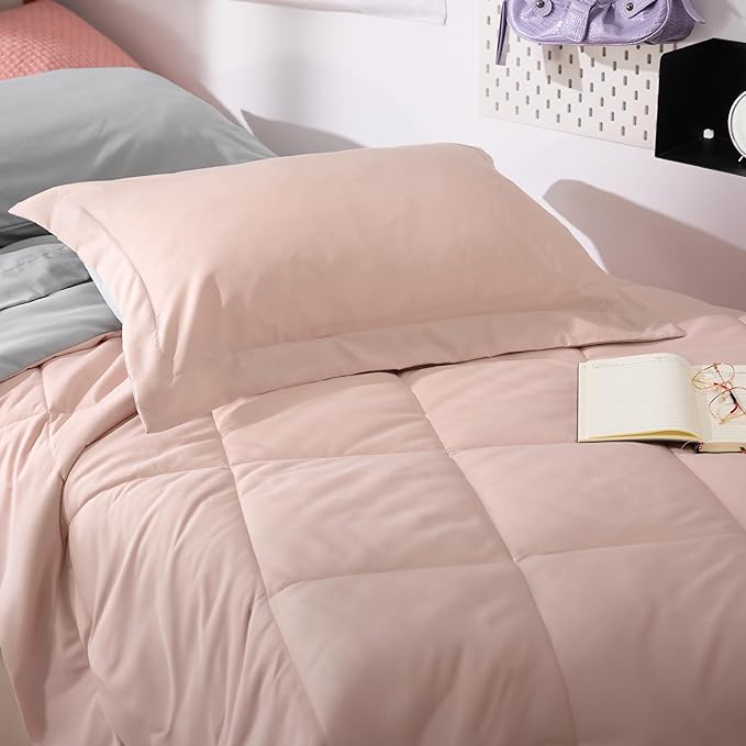Bedsure Blush Pink Twin XL Comforter Set with Sheets - 5 Pieces Reversible Twin XL Bed in a Bag for College, Twin XL Bedding Set with Comforters, Sheets, Pillowcase & Sham