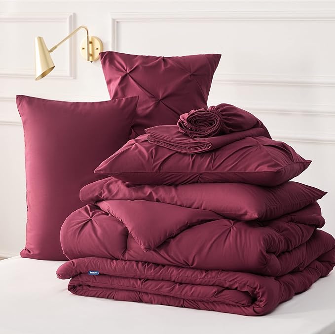 Bedsure Full Size Comforter Sets - Bedding Sets Full 7 Pieces, Bed in a Bag Burgundy Bed Sets with Comforter, Sheets, Pillowcases & Shams