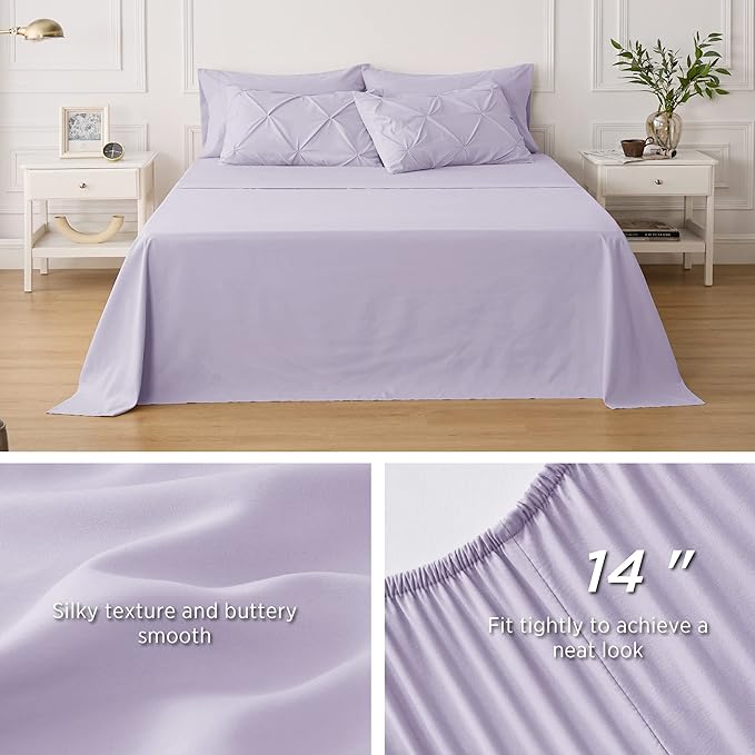 Bedsure California King Comforter Set - Cal King Bed Set 7 Pieces, Pinch Pleat Light Purple Cali King Bedding Set with Comforter, Sheets, Pillowcases & Shams