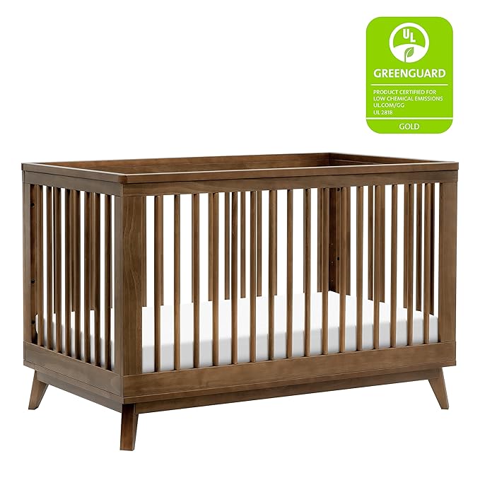 Babyletto Scoot 3-in-1 Convertible Crib with Toddler Bed Conversion Kit in Natural Walnut, Greenguard Gold Certified