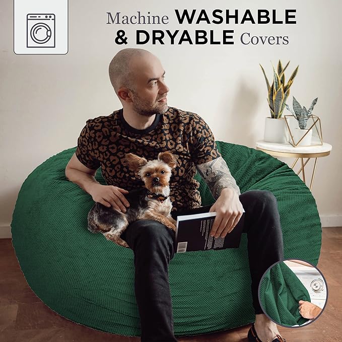 CordaRoy's Chenille Bean Bag - Convertible Bean Bag Chair & Bed - Machine-Washable Chenille Fabric Cover - for Basement, Living Room, Game Room, Dorm & More - Queen Size - Rainforest