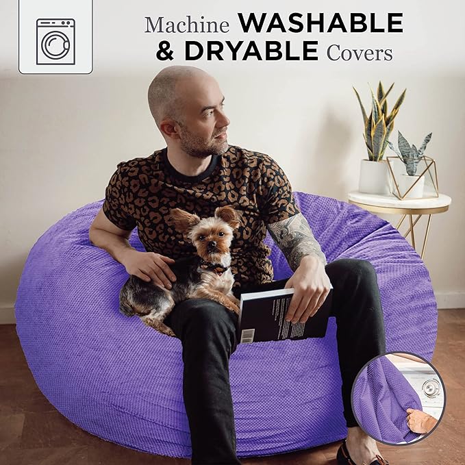 CordaRoy's Chenille Bean Bag - Convertible Bean Bag Chair & Bed - Machine-Washable Chenille Fabric Cover - for Basement, Living Room, Game Room, Dorm & More - Queen Size - Very Peri Purple