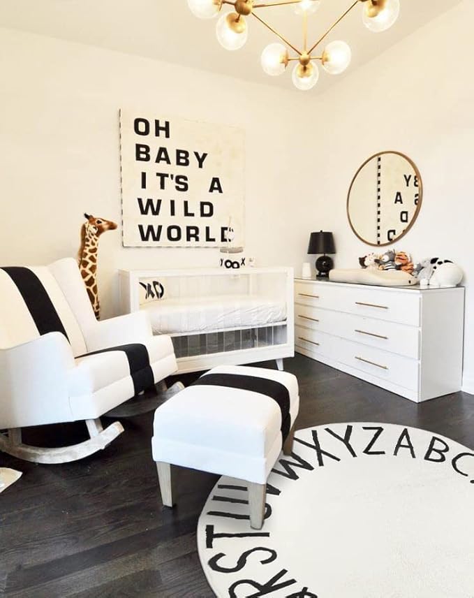 About This PERFECT SIZE:47 inches in diameter and 0.4 inches thick.Material:cotton and polyester ULTRA-SOFT: This superior alphabet rug is made...