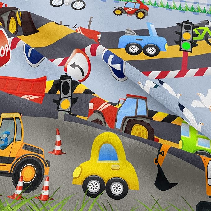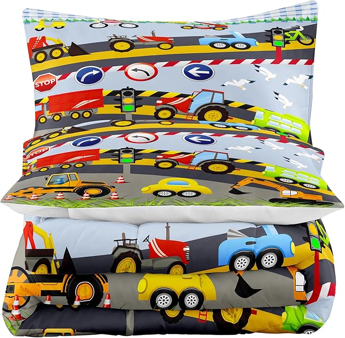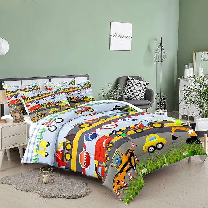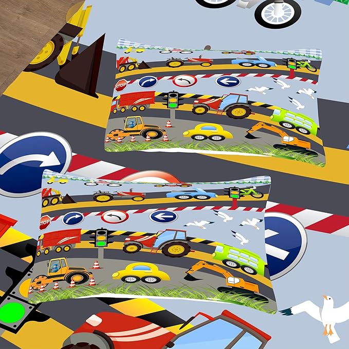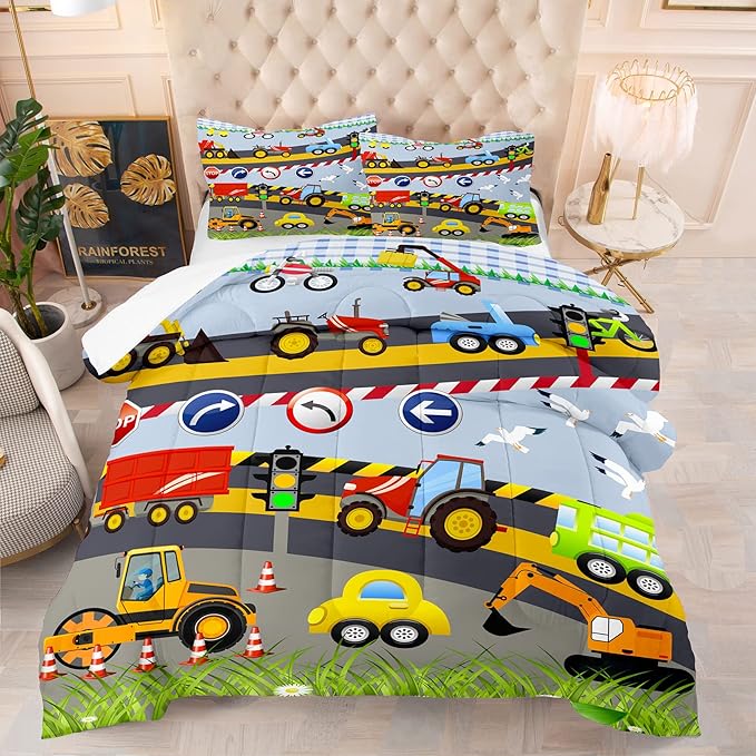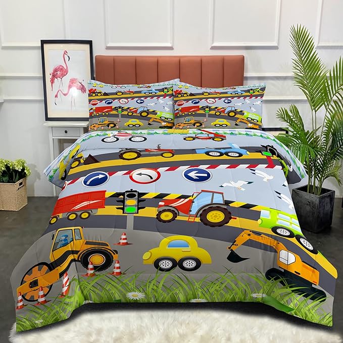 Tailor Shop Construction Vehicle Truck Kids Comforter Set Twin Size,Cartoon Excavator Bedding Sets Comforter Cover for Boys Childs Teens ,Tractor Mixer Room Decor with 1 Comforter 1 Pillowcases…