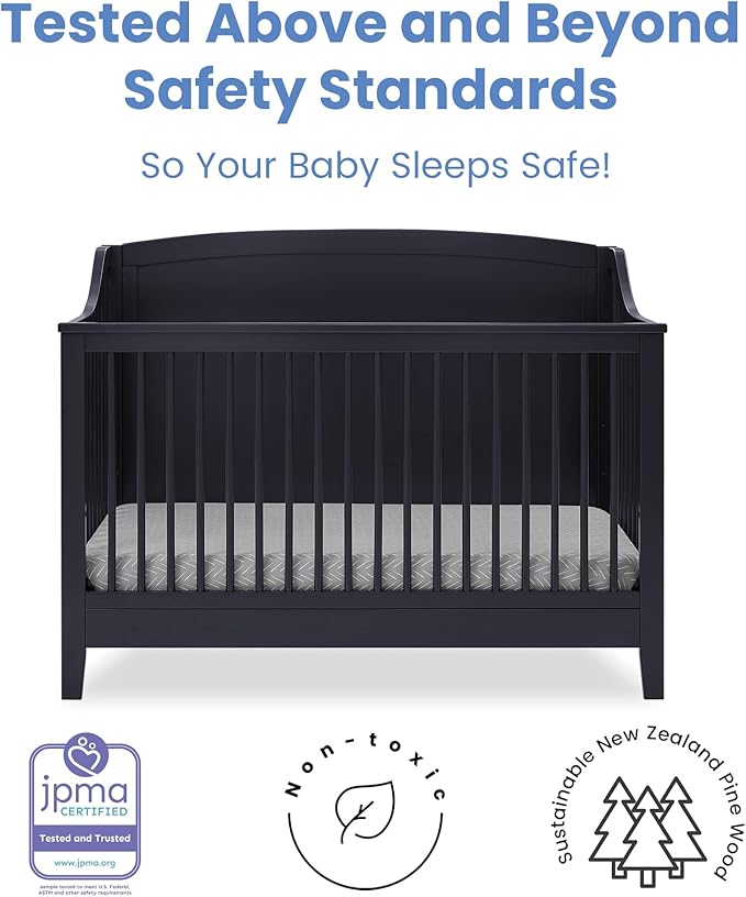Delta Children Campbell 6-in-1 Convertible Crib - Greenguard Gold Certified, Midnight Grey