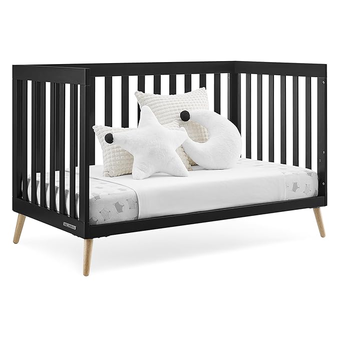 Delta Children Essex 4-in-1 Convertible Baby Crib, Ebony with Natural Legs