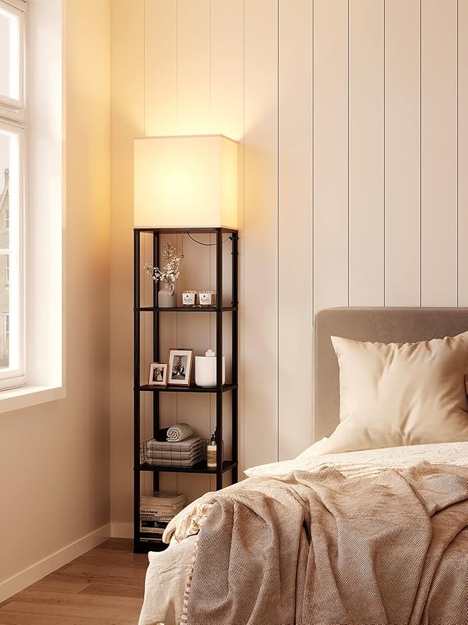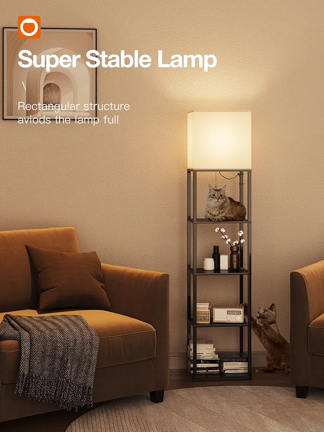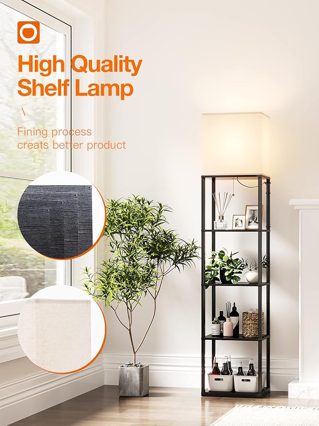 addlon Floor lamp with Shelves Large Size (12''W), 5-Tier Modern Floor lamp with 3 Color Temperatures LED Bulb, Display Shelf lamp for Living Room, Bedroom and Office - Black