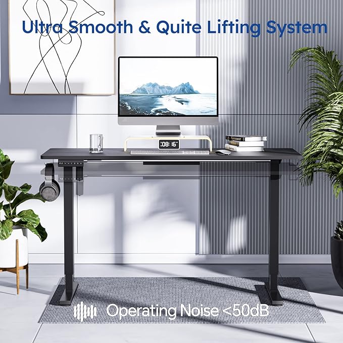 Standing Desk, Height Adjustable Desks with Powerful Motor and Cable Management,electric Sit Stand Desk with Hight Preset Design for Home Office Use 55x24 in Black