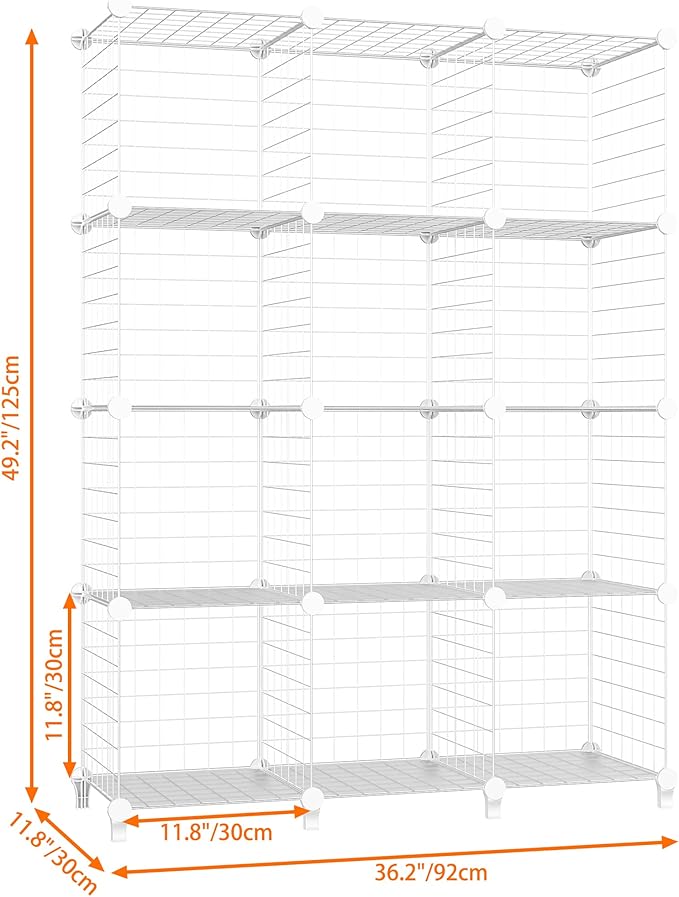 • 【Large Storage Space】: Each cube is 12” x 12” x 12”/30 x 30 x 30cm. Wire material & more closer iron wire design for bottom provide strong weight loading. this closet organizer storage can hold up to 22lbs(10kg) per cube. PP sheets are inserted into the shelving system and can also be removed. It's perfect for toys, goods and everything you want.