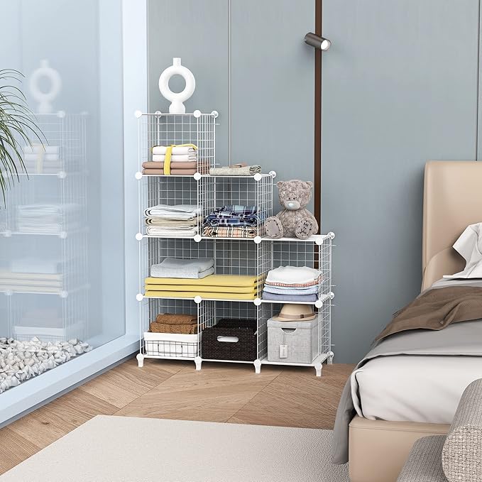HOMIDEC Closet Organizers and Storage, 12 Storage Cubes, Wire Cube Storage DIY Room Storage Shelf for Garment Racks, Closet, Wardrobe